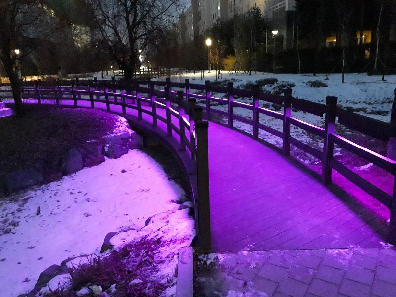 운양동에서 거주하는 김모(00)씨는 “그동안 공원 일부구간이 어두워 이용에 불편함이 있었는데 이렇게 공원이 더 밝아지고, 밋밋했던 목교를 무지개색 다리로 만들어 동네에 포토존이 하나 생긴 것 같아 기쁘다”라고 말했다.
