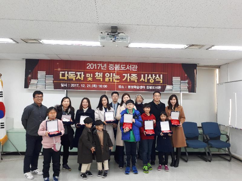 [미디어타임즈= 이옥수 기자] 김포시 평생학습센터 중봉도서관에서는 2017년 다독자 및 책 읽는 가족을 선정하고, 지난 21일 인증패를 전달했다.