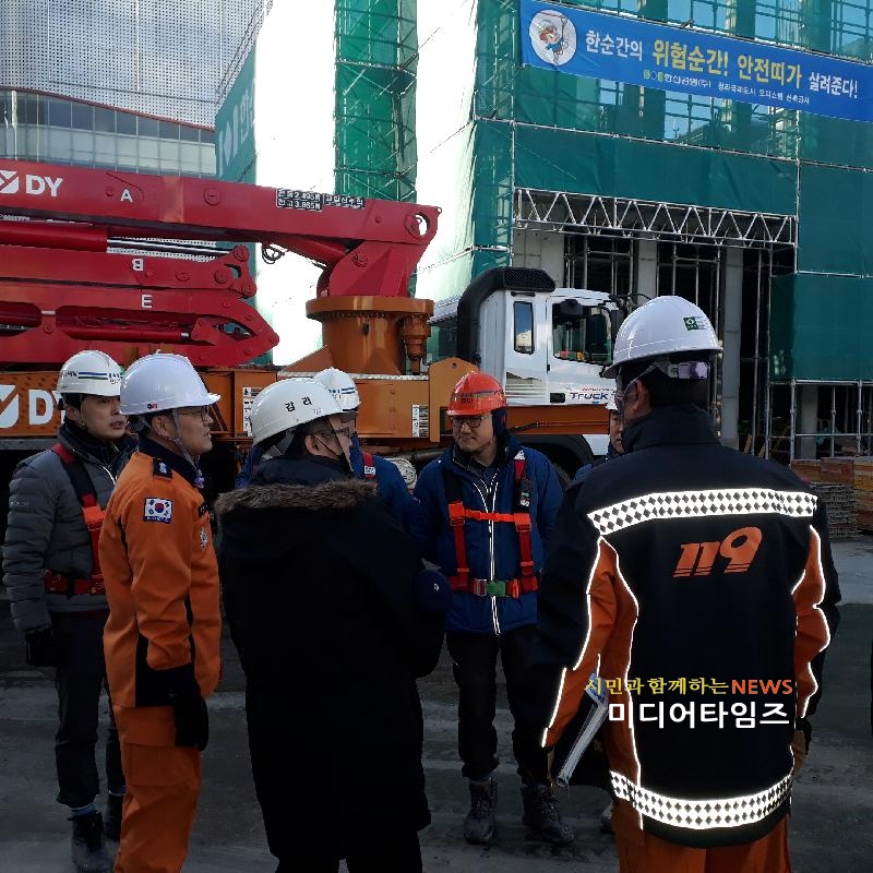 [미디어타임즈=문상수 기자] 인천서부소방서(서장 김준태)는 지난 25일(월) 수원 광교신도시 오피스텔 화재와 관련하여 화재예방 및 안전관리 강화를 위해 지난 26일(화)에 관내 경서동 956-19 한신더휴 커낼웨이 공사현장에 대해 현장예찰을 실시했다.현장 예찰 내용으로는 ▲공사장 안전의식 개선을 위한 소방안전교육 ▲임시소방시설 설치 및 유지·관리 상태 점검 ▲용접 및 용단작업 중 불티로 인한 사고 발생사례 및 방지법 안내 등이며, 또한 인천서부소방서 예방안전과는 지난 12월부터 서구 관내 용접·용단 작업장 관계자 간담회 및 화재예방 서한문 발송 등을 지속적으로 추진해왔다.소방서 관계자는 공사장 소방특별조사 실시, 공사장 내 위험물 안전관리강화,주요 대상 기동순찰노선 포함 현장방문 지도 등 "용접·용단 작업으로 인한 화재가 빈발하게 발생하는 만큼 공사현장 관계자들의 지속적인 안전교육과 철저한 안전수칙 준수를 통해 화재예방에 최선의 노력을 다해 달라"고 당부했다.