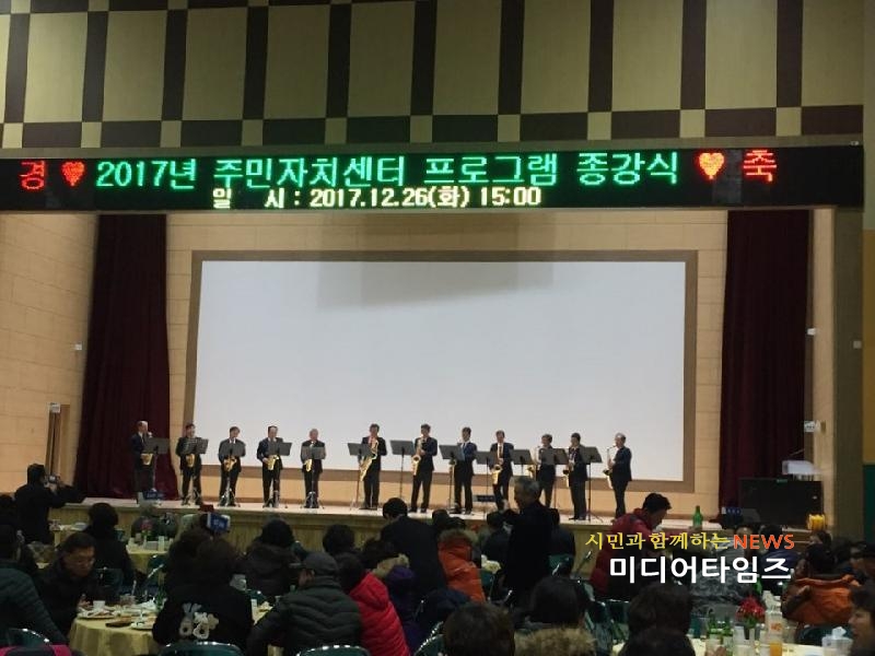 [미디어타임즈=문상수 기자] 인천시 옹진군 영흥면 주민자치센터에서는 26일 각급 유관기관 단체장, 주민 등 200여명이 참석한 가운데 영흥면 늘푸른센터에서 올 한해 동안 운영한 자치센터 프로그램 발표회를 가졌다. 이번 발표회에 앞서 행사장 곳곳에 꽃꽂이, 분재 회원들이 만든 작품을 전시해 행사장을 찾은 이들에게 볼거리를 제공하고, 댄스스포츠, 에어로빅 등 흥겨운 공연과 전문가 수준의 색소폰 동호회의 연주로 발표회 분위기를 한껏 높였다.장성호 주민자치위원장은“다양한 프로그램을 통해 바쁜 농어촌 주민들에게 생활의 활력소를 불어넣는 좋은 기회가 됐으며 주민자치센터가 주민들의 자기 계발과 여가 활용을 위한 열린 공간과 화합의 장이 될 수 있도록 내년에도 더욱 알찬 프로그램 운영하겠다”고 전했다. 한편 영흥도 섬 주민들의 다양한 문화생활과 취미·여가·교육 등 평생학습 장으로 자리매김하고 있는 주민자치센터 프로그램은 지역 주민들에게 높은 호응을 얻고 있다.