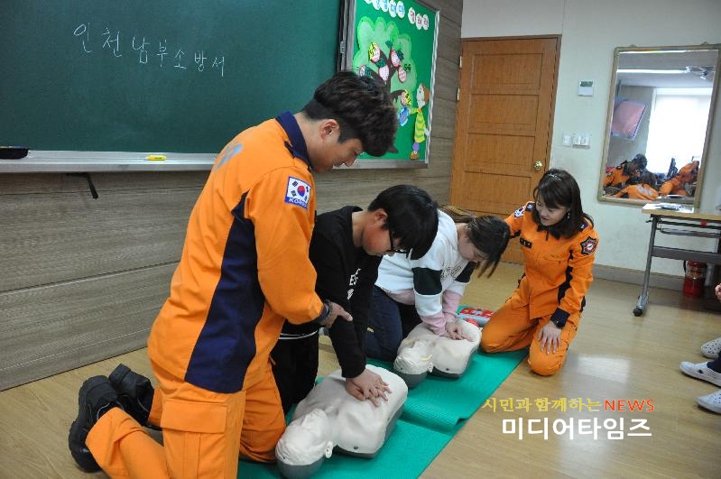 [미디어타임즈=문상수 기자] 인천남부소방서(서장 류환형)는 26일과 27일 양일동안 관내 용현남초등학교에서 안전한 학교를 만들기 위한 119체험부스를 운영했다.현재 용현남초등학교 본관에서는 「2017 어린이 불조심 우수작품 전시회」가 운영 중이며 보건교육실에서 전시회를 관람한 학생들을 대상으로 심폐소생술과 제세동기 사용법을 교육했다.소방서 관계자는 “아이들이 심폐소생술과 제세동기 사용법을 잘 배워서 응급상황에 놓인 소중한 인명 소생의 도움이 될 수 있길 바라며 전시회를 통해 불조심에 대한 관심도 가져주길 바란다.”고 전했다.