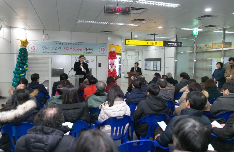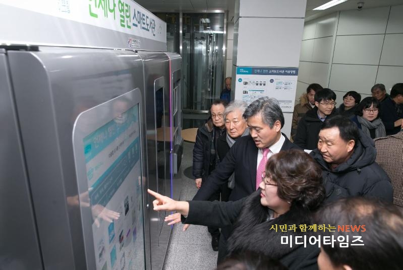 [미디어타임즈=문상수 기자] 인천시 서구는 27일 오후2시경 인천지하철 2호선 서구청역과 검단사거리역 등 2개 역사에 365일 24시간 무인 도서대출․반납시스템인 스마트도서관을 설치하고 「언제나 열린 스마트도서관 개관식」을 개최했다. 스마트도서관은 도서관의 자료제공이 소유에서 공유의 개념으로, 소장중심에서 접근중심으로 변화하는 사회 환경 변화에 발빠르게 대응하고 지식정보 취약계층의 지식정보격차 해소를 위해 추진됐다. 인천에서는 처음 실시되는 스마트도서관 서비스는 지하철 2호선 역사 중 유동인구가 많고 지역주민의 접근이 용이한 서구청역과 검단사거리역에 설치했다. 이번 개관식을 시작으로 시험운영을 거쳐 내년 1월 2일부터 정상 운영할 예정이며, 도서관에 가기 힘든 바쁜 직장인과 학생들이 시간에 구애받지 않고 편리하게 도서 대출·반납이 가능해 적극 반기는 분위기다. ‘언제나 열린 스마트도서관’은 1개소당 약 500여권의 도서가 적재되어 있으며 1회 2권까지 일주일간 대출이 가능하다. 스마트도서관의 이용은 서구 구립도서관에 회원가입이 되어 있어야 하며, 회원증은 구립도서관(검암, 석남, 검단, 심곡, 신석)에서 본인 확인을 거쳐 발급 받을 수 있다.