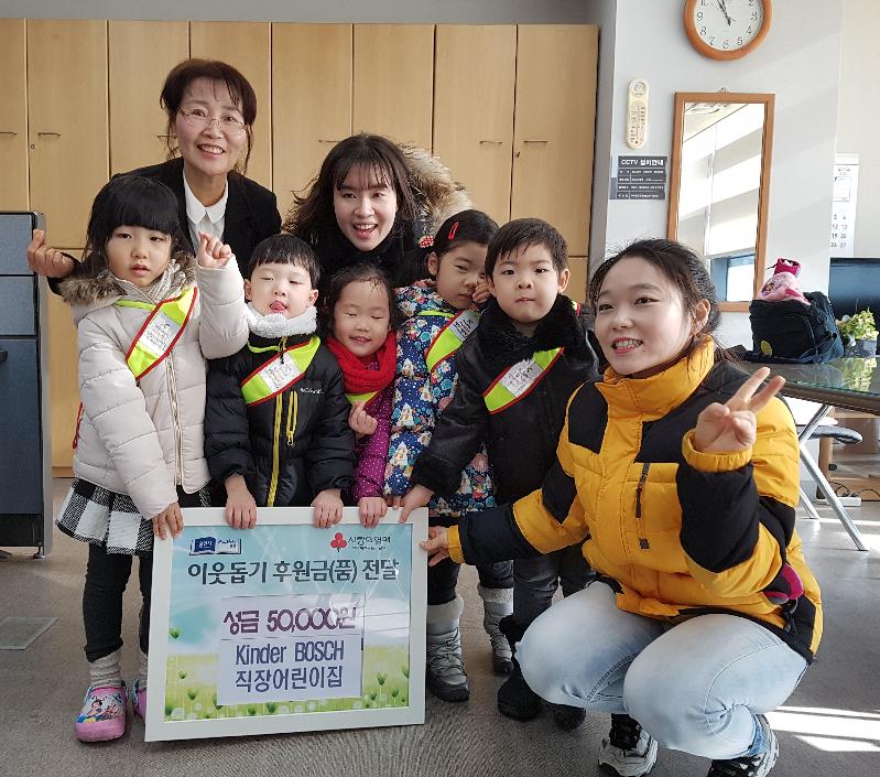 한국떡류식품가공협회는 떡국떡 440kg을, 킨더보쉬직장어린이집에서는 원생들이 나눔장터를 개최해 마련한 수익금 5만원을 기탁했다.