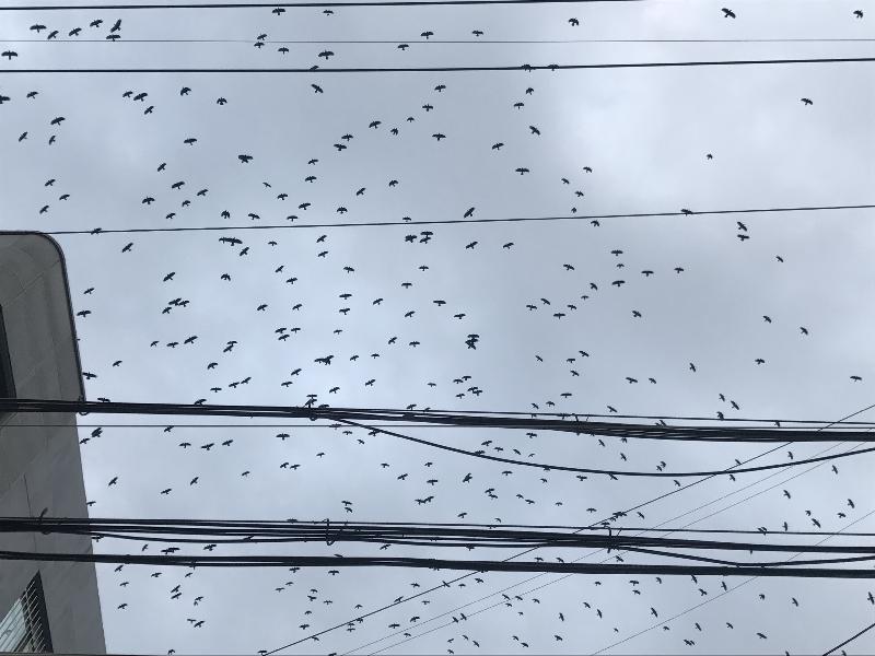 지난 겨울 처음 수원시에 출몰해 4개월여(2016년 12월~2017년 3월) 동안 머물렀던 떼까마귀는 올해도 수원시를 찾아왔다. 날이 어두워지면 팔달구 일원에서 수천 마리가 무리지어 날아다닌다. 떼까마귀 배설물로 인한 피해를 호소하는 민원이 계속되고 있다.