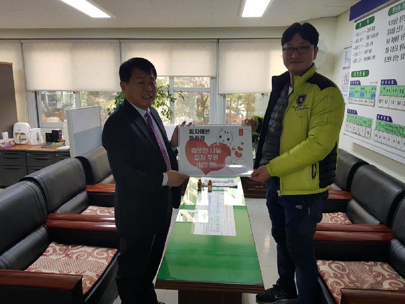 [미디어타임즈= 이옥수 기자] 고양시(시장 최성) 덕양구 행신3동은 매서운 강추위가 기승을 부리는 12월의 마지막 주 수요일(27일), 따뜻한 나눔 소식으로 훈훈함을 더했다. ‘피자헤븐’ 화정점에서 행신3동 저소득계층을 위해 1년 간 120판의 피자 후원을 약속한 것.