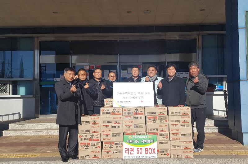 [미디어타임즈= 이옥수 기자] 평택시 안중로타리클럽(회장 김진남)에서는 지난 27일 연말을 맞이해 지역의 어려운 이웃을 위한 라면 50박스(100만원 상당)를 안중읍 행정복지센터에 기탁해 추운 겨울날 훈훈함을 전하고 있다.