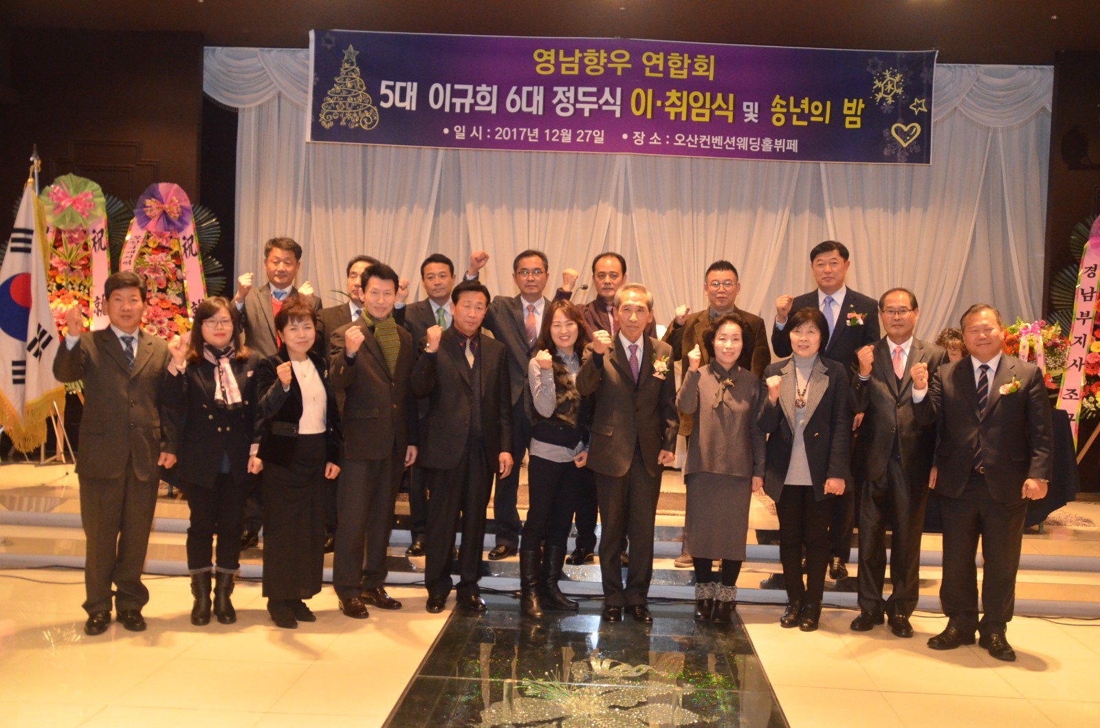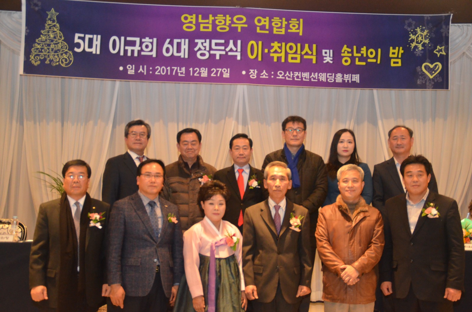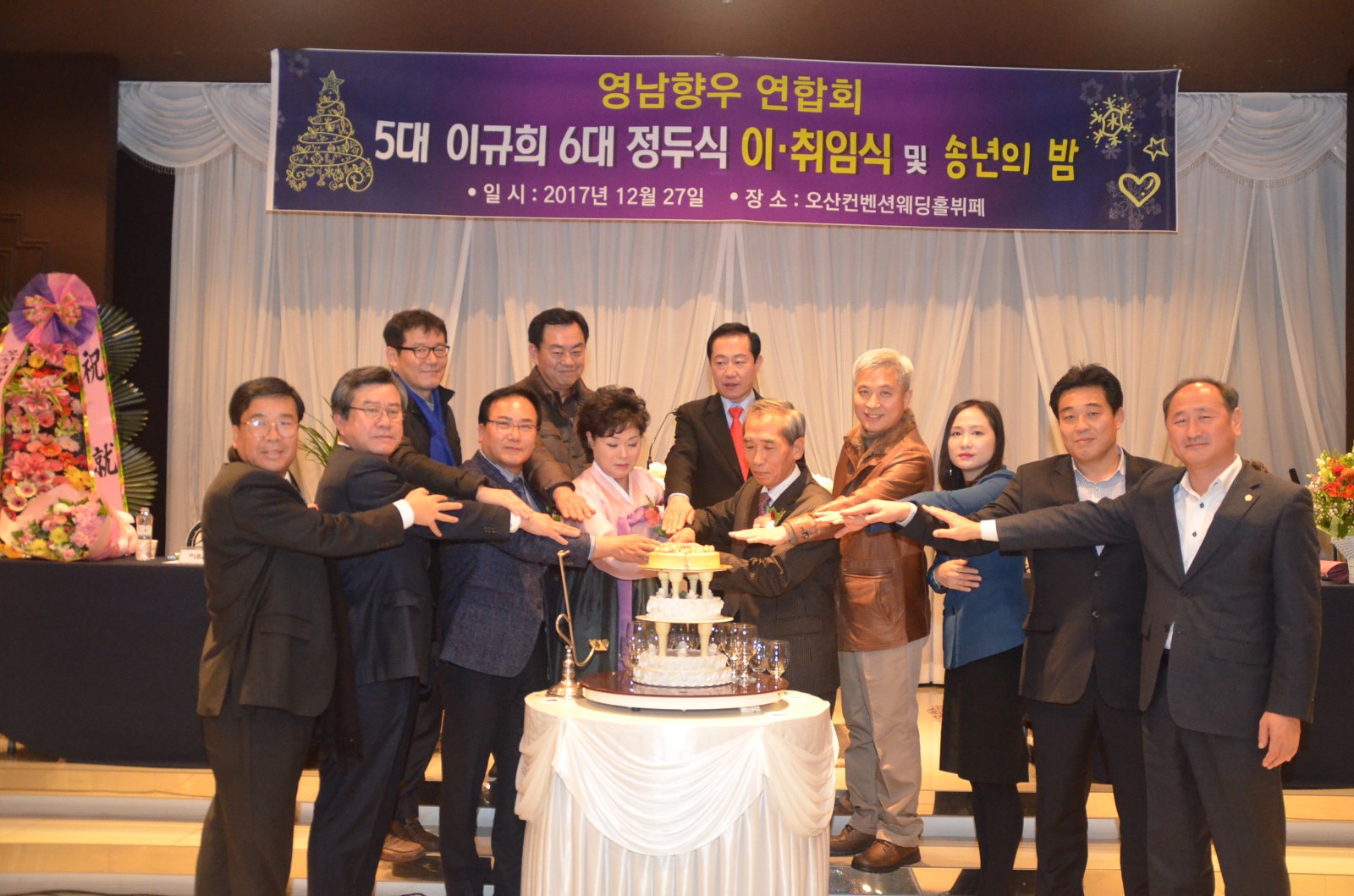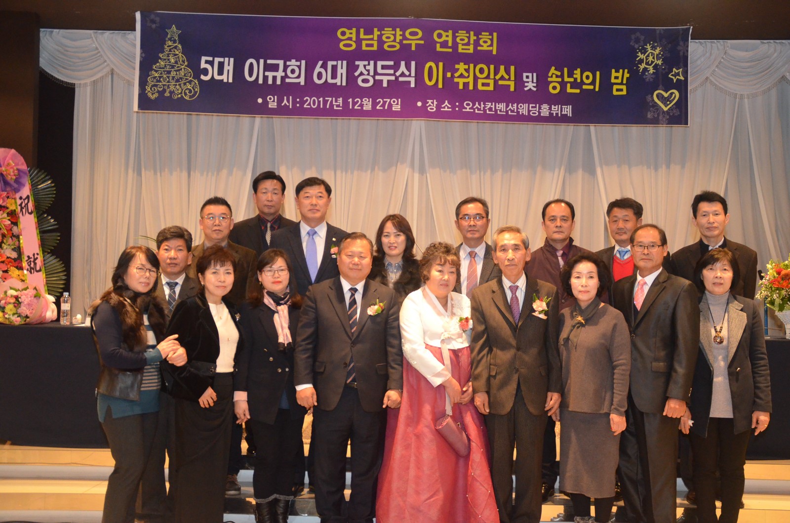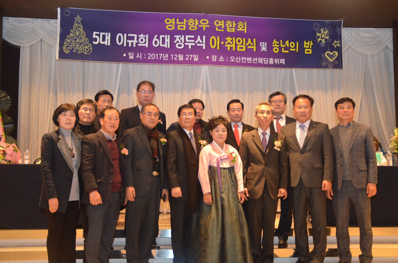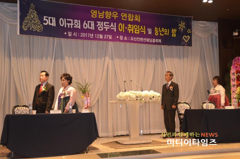 [미디어타임즈= 신훈종 기자] ‘在)오산 영남향우연합회’는 2018년 무술년 새해를 앞두고 지난 27일 오후 7시 오산켄벤션웨딩홀 4층에서 「제5대·6대회장 이˙취임식 및 향인과 함께하는 송년회」를 개최했다.