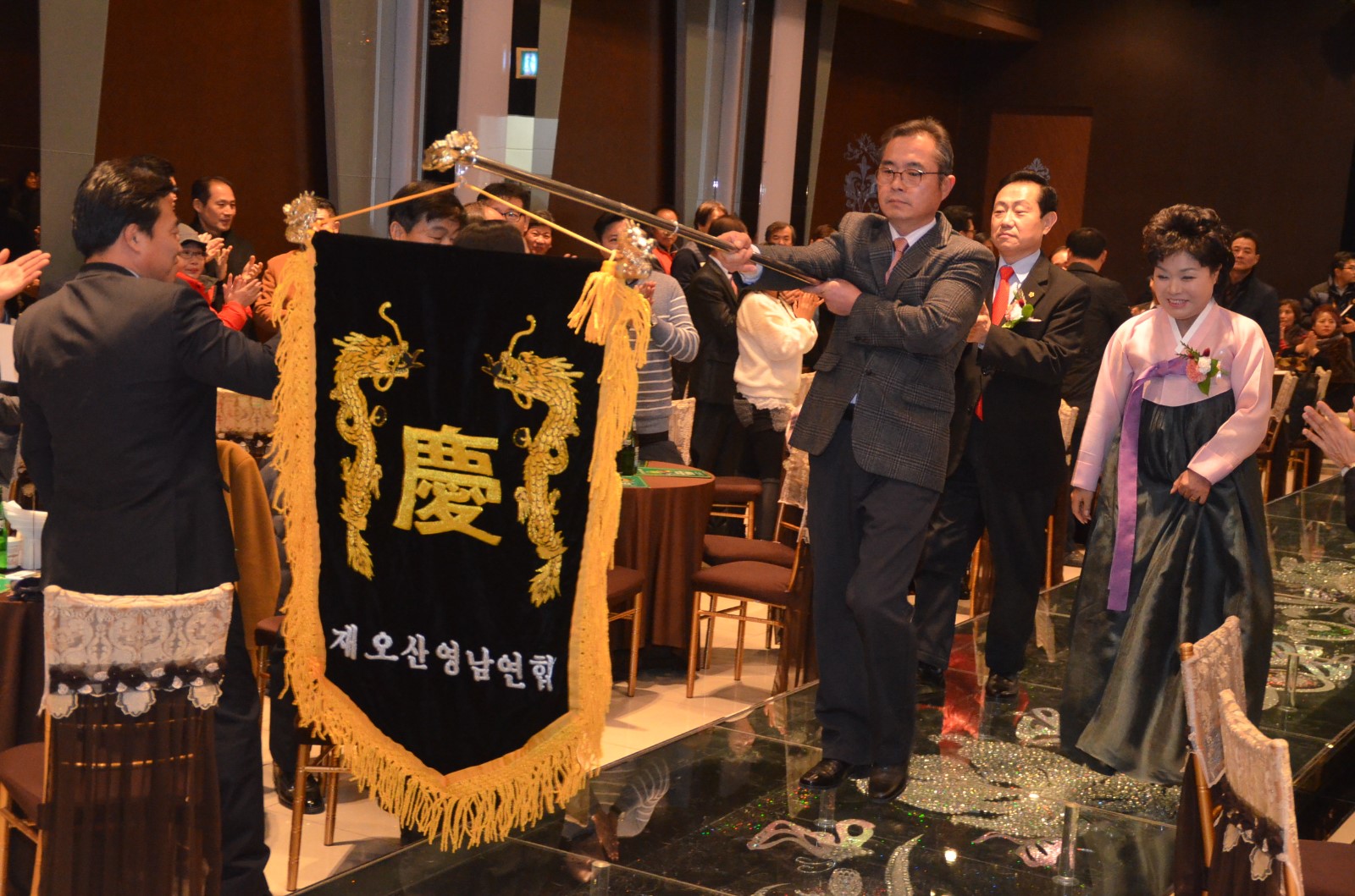 행사는 권영탁 사무국장 사회로 영남향우연합회旗 입장을 시작으로 연혁보고, 공로패수여, 추대패 전달, 기념촬영 등으로 이·취임식이 진행됐고, 2부 행사에서는 만찬과 함께 향우인들의 애정이 돈독한 노래자랑 등으로 아름다운 송년의 밤 축하 행사를 끝으로 마무리했다.