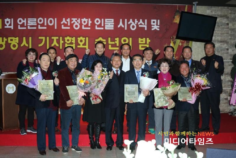 [미디어타임즈= 신훈종 기자] 광명시 기자협회(회장 김영석)는 2017년 정유년 한 해를 보내면서 지역사회 발전과 공헌을 해 온 인물 6명을 선정하여 지난 26일 오후 6시 메종드블랑켄밴션 7층 연회장에서 공로패 시상식을 개최했다.