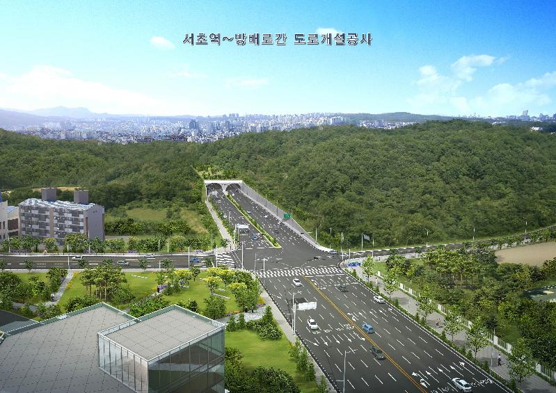 서초역∼방배로간 도로개설공사'는 서초구 서초동 서초역에서 방배동 내방역을 연결하는 총 연장 1,280m 구간으로 터널(355m) 및 옹벽(155m) 구간은 왕복 6차로, 나머지(770m) 미정비 구간은 왕복 8차로로 확장된다. 오는 2019년 2월말까지 완공될 예정이다.