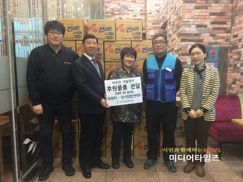 | 한사랑할인마트 라면 후원 사진. <ⓒ미디어타임즈> |