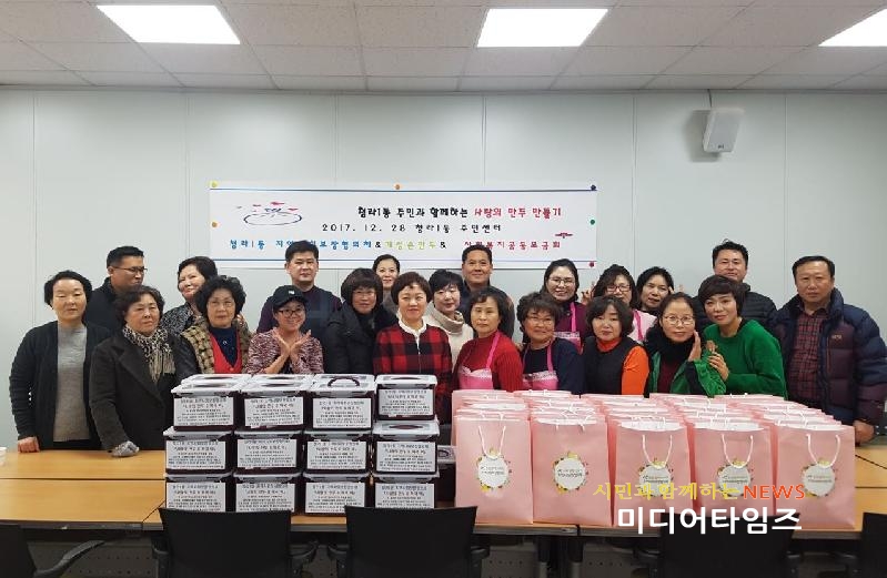 [미디어타임즈=문상수 기자] 인천시 서구 청라1동 지역사회보장협의체(공동 위원장 유미순, 정관성)는 지난 28일 새해를 맞이하여 『사랑의 만두 만들기』행사를 진행했다. 이번 행사는 청라1동 지역사회보장협의체 위원과 일반 주민이 봉사자로 참여해 만두를 직접 빚고 밀폐용기에 개별 포장해 떡국 떡과 함께 저소득 가구에 전달하기 위해 마련됐다.이번 행사에는 많은 지역주민들의 도움으로 진행됐으며, 만두소와 만두피는 『경복궁 개성손만두』에서 약 600개 상당의 재료를 기탁했다. 이날 행사에 참여한 주민들은 “작은 손길로 저소득 가정에 따뜻한 연말을 선물하게 된 것 같아 행복하다”고 말하며 행사 내내 즐거운 모습으로 만두를 빚는 모습을 보였다.청라1동 지역사회보장협의체 정관성 공동위원장은 “따뜻한 이웃 사랑 실천에 참여해준 모든 분들께 깊은 감사의 인사를 드리며 앞으로도 많은 지역주민이 관심을 가지고 참여 할 수 있는 사업들을 마련하겠다”고 말했다.