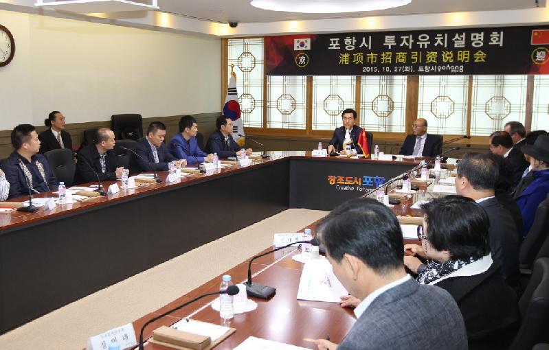 포항시는 중국 푸젠성(福建省), 산둥성(山東省), 후난성(湖南省), 구이저우성(貴州省), 헤이룽장성(黑龍江省) 및 장쑤성(江蘇省) 등지에 소재한 중국 내 유수 유통기업 및 건강식품업체 대표들을 대상으로 27일, 시청 중회의실에서 투자유치설명회를 개최했다. 이번 투자유치설명회는 한류의 영향과 소득수준의 향상으로 중국인들의 한국 건강식품에 대한 수요가 증가하면서 중국 유통업체 대표들이 한국의 모면세점과 협력관계를 통해 관내 소재기업의 칼슘제품을 구입하기 위해 포항을 방문하게 되면서 이뤄졌다. 포항시는 투자유치설명회를 통해 서울에서 2시간대에 도달할 수 있고 동해 중부선‧남부선 개통 및 포항-울산, 포항-대구 간 고속도로를 기반으로 한 편리한 접근성과 영일만항 국제컨테이너 터미널과 배후 산업단지, 국가산업 단지 등 우수한 투자인프라를 소개했다. 또한 영일대해수욕장에 인접한 특급호텔 부지, 포항운하 주변 상업지구 및 두호마리나 사업 등을 차례로 소개하며 포항 투자의 경쟁력과 사업매력을 집중 홍보하고 영일만4일반산업단지, 영일만관광단지, 포항경제자유구역 등에 외국 자본유치를 적극 희망한다는 포항시의 강력한 의지를 전달하고 포항에 적극적인 관심을 가져줄 것을 요청했다. 이강덕 포항시장은 투자유치설명회 인사말을 통해 “포항 투자를 결정해 주시면 포항이 성공의 발판이 될 수 있도록 모든 정성과 마음을 다해 행정적인 부분을 지원할 것을 약속 드린다”며 적극적인 관심을 갖고 투자여건을 꼼꼼히 검토해 줄 것을 요청했다. // 심후보 기자