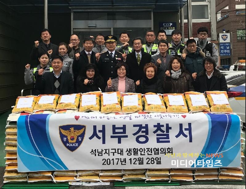 | 서부경찰서 석남지구대 생활안전협의회, 따뜻한 연말을 위한 사랑의 양곡 기탁 사진. <ⓒ미디어타임즈> |