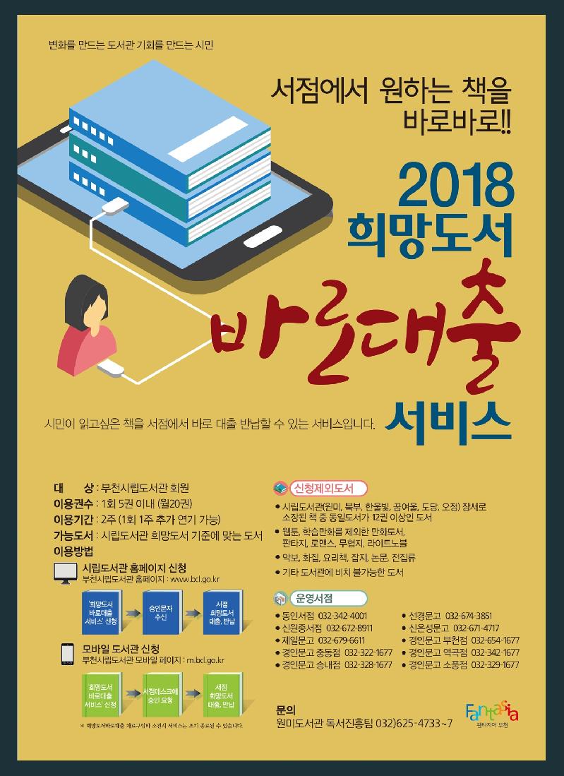 [미디어타임즈= 이옥수 기자] 부천시는 2018년 희망도서바로대출서비스를 1월 1일부터 시작한다.