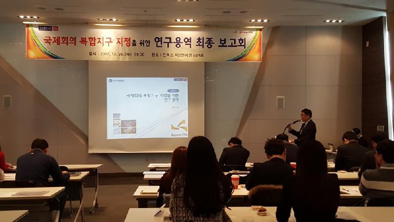 이번 연구용역을 수행한 사단법인 한국지식경영학회는 최종보고회에서 ‘지식융합을 선도하는 글로벌 마이스도시로의 도약’이란 비전하에 고양시 국제회의 관련 산업의 융·복합에 의한 마이스산업의 전략적 육성방안을 제시했다. 또 킨텍스를 비롯한 한류월드, 테크노밸리 등 통일한국 실리콘밸리 사업과 연계한 국제회의 집적시설 개발계획을 추진하고 있는 고양시가 국제회의 복합지구 지정 요건을 충분히 갖추고 있다고 연구결과를 발표했다.