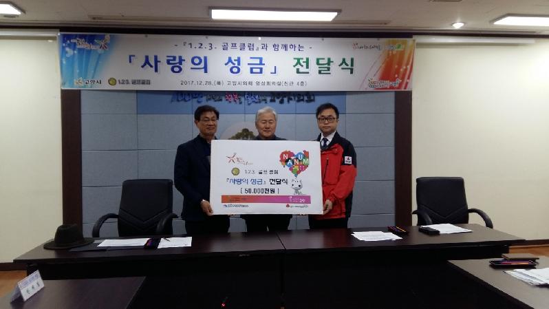 [미디어타임즈= 이옥수 기자] 고양시(시장 최성)는 지난 28일 ‘고양시민 복지나눔 1촌 맺기’의 일환으로 관내 덕양구 동산동에 소재한 ‘1.2.3. 골프클럽’에서 사랑의 성금 5천만 원을 기탁했다고 밝혔다.