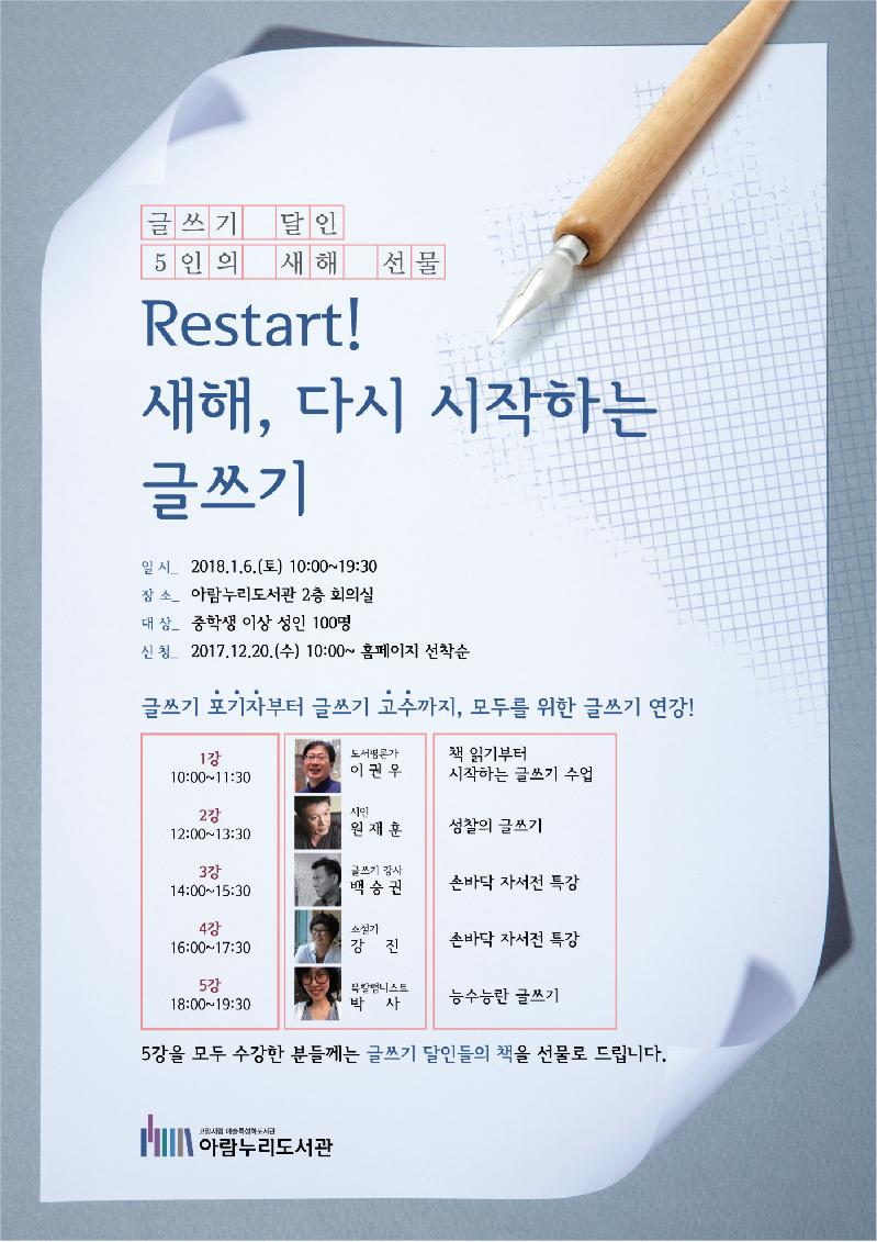 - 오는 1월 6일 ‘Restart! 새해, 다시 시작하는 글쓰기’ 강연 진행