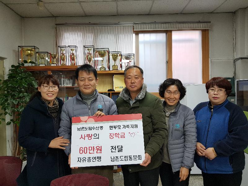 한국자유총연맹 남촌도림동분회는 연말을 맞아 회원들의 자발적인 기부로 성금을 모았으며, 남촌도림동의 저소득 한부모가족의 학생들을 위해 장학금을 사용해달라고 요청했다.