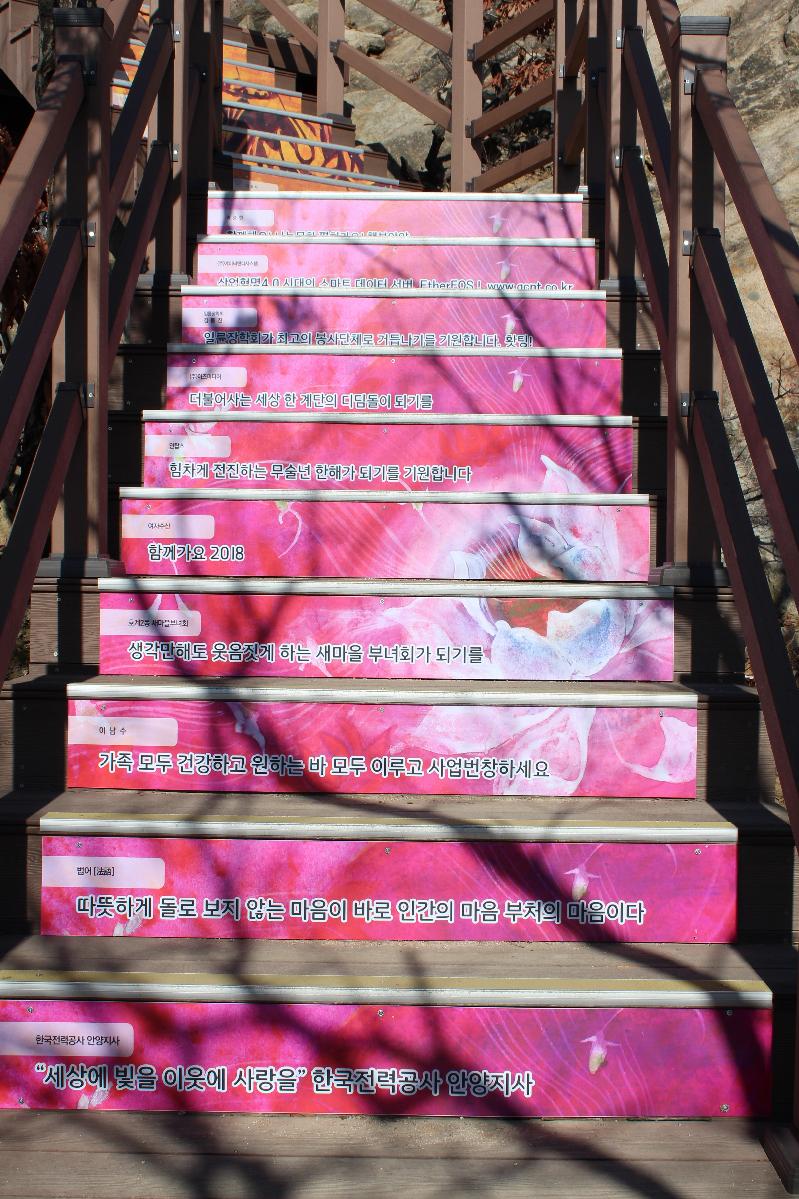 [미디어타임즈= 신훈종 기자] 안양시(시장 이필운)는 관악산 국기봉 등산로 계단에 기부의 의미를 되새기고 시민들의 새해소망을 적어 소원을 기원하며 기부를 하는 2018년 십시일반 소망기부계단 설치를 완료했다고 29일 밝혔다.