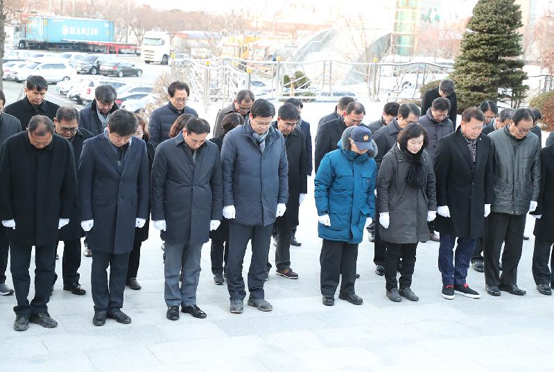 [미디어타임즈= 이옥수 기자] 평택시(시장 공재광)가 2018년 무술년 새해를 맞이해 1일 아침 8시 평택호 현충탑에서 신년 참배 행사를 가졌다.