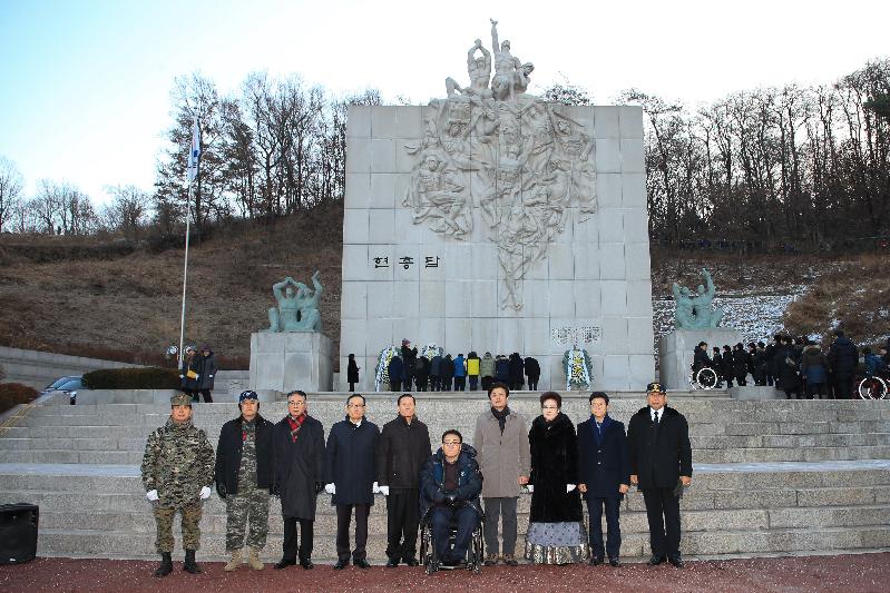 [미디어타임즈= 이옥수 기자] 강동구 부천시의회 의장은 1일 오전 8시 원미공원에서 개최된 신년원단 현충탑을 찾아 헌화와 분향을 하며 호국영령과 순국선열의 넋을 기리고, 무술년 새해 부천시의 새로운 도약과 발전을 기원했다.