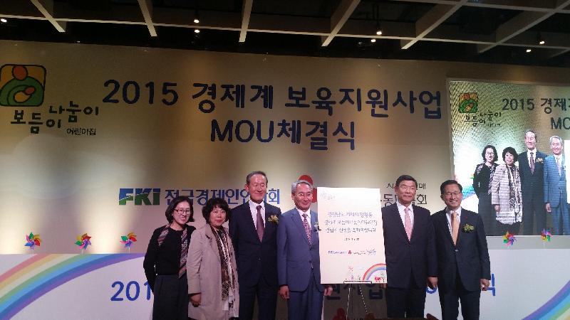 거제시(시장 권민호)는 28일 오후 2시 전경련회관 컨퍼런스 1층(서울시 영등포구 소재)에서 열린 ‘2015. 경제계 보육지원사업 보듬이나눔이어린이집` 양해각서(MOU) 체결식에 참석, 허창수 전경련회장과 협약서를 교환했다.