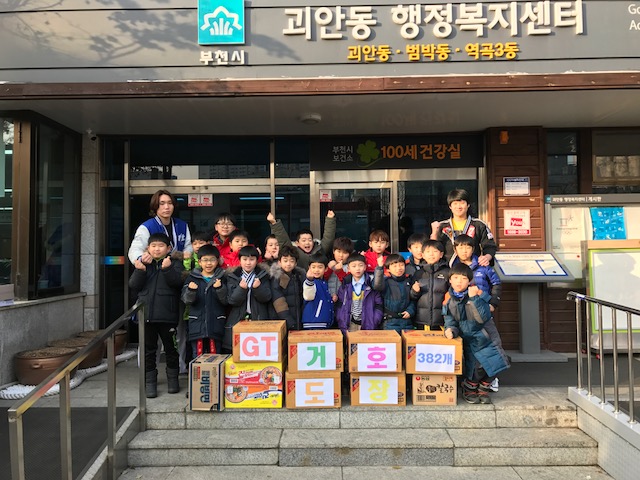 [미디어타임즈= 이옥수 기자] 괴안동 복지협의체(위원장 이경희)에 지난 2일 GT 거호 해동검도장 관장과 18명의 어린 관원들이 방문하였다.