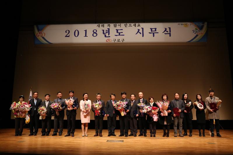 시무식에서는 복지사각지대 발굴 우수사례 연극발표, 2017년 구로를 빛낸 기업과 구청 우수부서에 대한 시상, 이성 구청장의 신년사 등이 진행됐다.