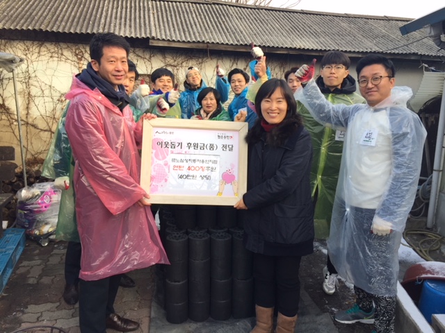 이들은 2016년부터 1년 동안 판매한 차량 1대당 1,000원씩을 적립한 기금에 협력업체 등의 성금을 더해 유림동 저소득 가구에 연탄을 지원하고 있다.