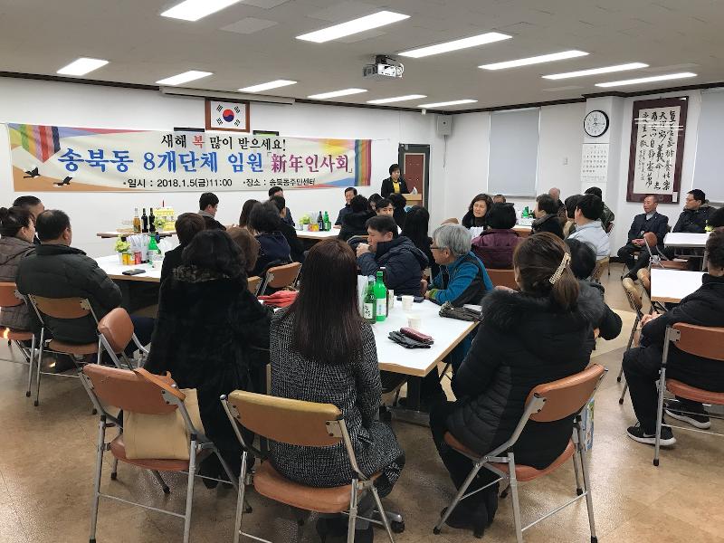 [미디어타임즈= 이옥수 기자] 다사다난했던 2017년을 보내고 새로운 마음으로 무술년 새해의 각오를 다지는 송북동 8개 단체 신년인사회가 지난 5일 송북동주민센터에서 개최되었다.