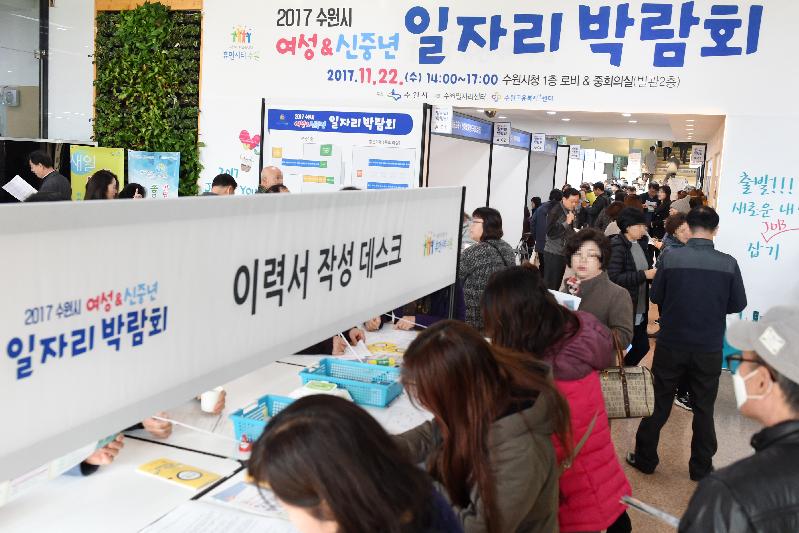 맞춤형 일자리 창출 사업도 지속해서 전개하고 있다. ‘여성 일자리 박람회’, ‘청년일자리 박람회’, ‘40~50대 중장년일자리 박람회’, ‘민간 노인 일자리 채용 한마당’ 등을 정기적으로 열고 있는 수원시는 올해 ‘신중년(만 50~64세) 디딤돌 일자리사업’을 신설했다.
