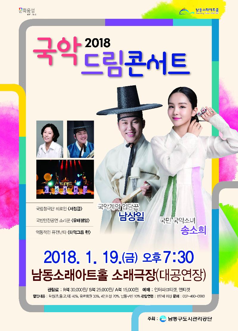 오는 19일(금) 오후 7시 30분 대공연장(소래극장)에서 공연되며, 관람료는 R석, 30,000원 S석 25,000원, A석 15,000원, 예매는 인터파크티켓과 엔티켓을 통해 가능하다. 문의.032-460-0560