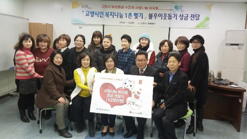 이번에 기탁된 수익금은 여성회관에서 수강하는 제과제빵, 생활한복, 현대의상, 생활도예 등 20개 강좌 수강생들과 자원봉사자들이 참여해 그동안 배운 실력으로 다양한 상품들을 직접 만들고 판매해 모은 것이다. ‘고양시민 복지나눔 1촌 맺기’ 사업의 일환으로 복지사각지대에 놓인 생활형편이 어려운 소외계층에게 사용될 예정이다.