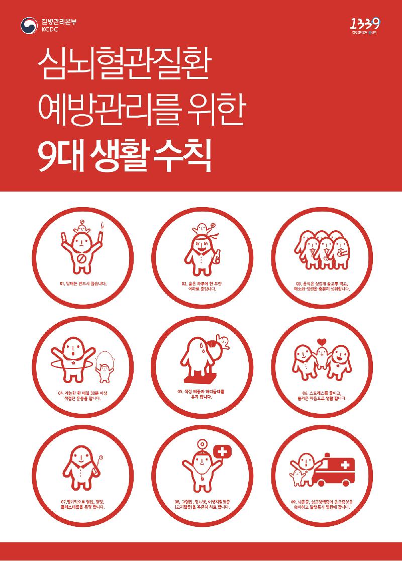 고양시 덕양구보건소 관계자는 “평소 심뇌혈관질환 예방관리를 위한 수칙을 잘 지켜서 질환으로 이행을 예방하고 심근경색, 뇌졸중 증상이 나타나면 즉시 주변에 도움을 요청해 신속하게 응급실에 가서 치료를 받을 것”을 당부했다.