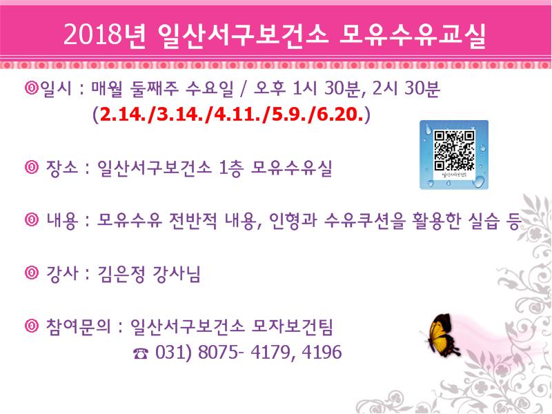 모유수유 전문가를 초빙해 오는 2월부터 매월 둘째 주 수요일 오후 1시 30분, 2시 30분에 운영된다.