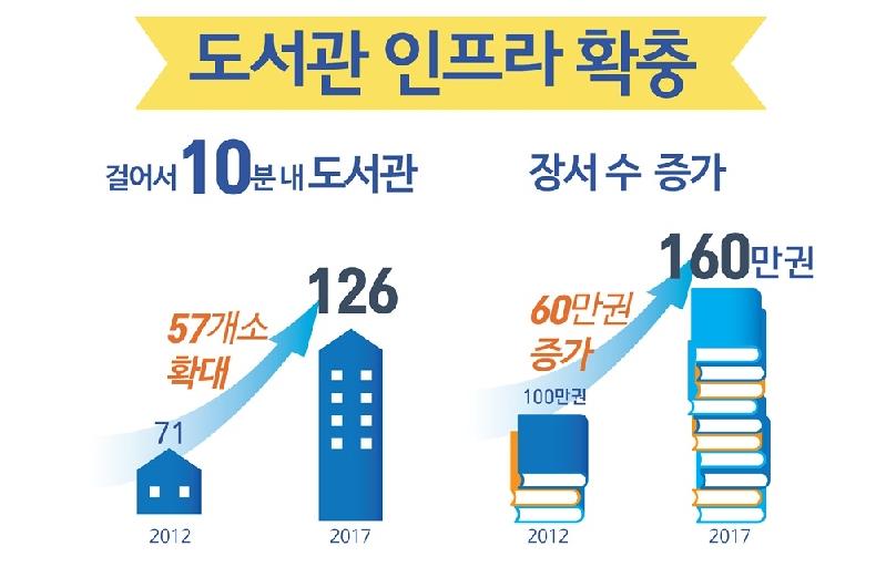 부천시는 누구나 생활 속에서 쉽게 책을 접하고 읽을 수 있도록 도서관 건립에 힘 써왔다. 동네마다 걸어서 10분 거리에 도서관이 있는 ‘이웃처럼 가까운 친근한 독서 공간’ 마련을 위해 노력한 결과, 2012년에 71개소였던 도서관은 126개소로 늘어났고 장서 수도 100만권에서 160만권으로 늘어났다.