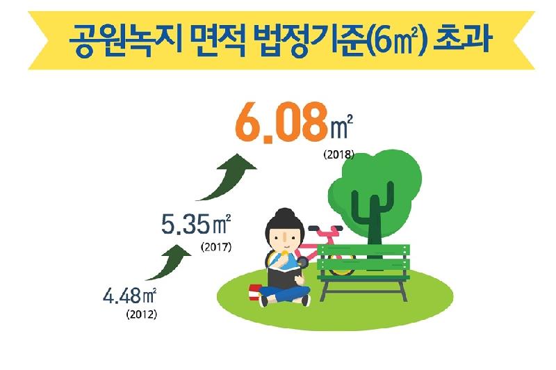 부천시는 급격한 도시화로 녹지비율이 크게 부족한 한계를 극복하고 녹색 생활공간 확보에 주력해왔다. 그 결과 1인당 공원녹지 면적이 2012년 4.48㎡에서 지난해에는 5.35㎡, 올해는 6.08㎡에 이른다. 이는 법정기준인 6㎡를 초과하는 수치다.