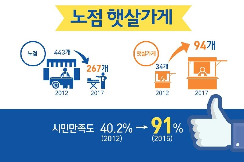 무질서했던 노점상들이 햇살가게로 재탄생했다. 갈등해결 우수사례로 꼽히기도 한 부천의 햇살가게는 시민통행에 불편을 초래하지 않는 곳에서 질서 있게 운영되고 있으며, 노점상인 및 시민들의 만족도 또한 상당히 높다.