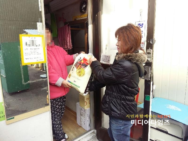 [미디어타임즈=문상수 기자] 인천 계양구 계산3동 복지통장(회장 강형기)은 연말·연시를 맞아 소외계층 50세대에 이웃돕기 물품을 전달했다.계산3동 통장협의회는 지난 12월 22일 정례회의를 통하여 복지사각지대 50세대에 온누리감리교회에서 후원한 백미 10kg을 통장이 직접 세대 방문하여 전달하기로 결정하고 사업을 시행하였다.강형기 회장은 “2017년 7월 동 주민센터, 보장협의체, 복지통장 간 협약을 실시하였고 그동안 지속적으로 관내 복지사각지대 발굴을 위하여 모든 통장이 발로 뛰었다”며 “2018년 새해를 맞아 우리 주위를 돌아보며 불우한 이웃과 함께 서로 위로해 가는 한해가 되었으면 한다”고 말했다.