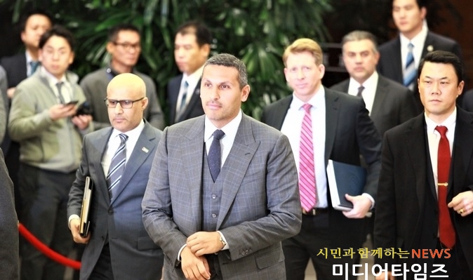 [미디어타임즈= 신훈종 기자] 임종석 청와대 비서실장의 아랍에미리트(UAE) 특사 방문 배경을 두고 날 선 공방을 벌여온 아랍에미리트 왕세제의 최측근인 칼둔 칼리파 알 무바라크 아부다비 행정청장이 8일 방한했다.