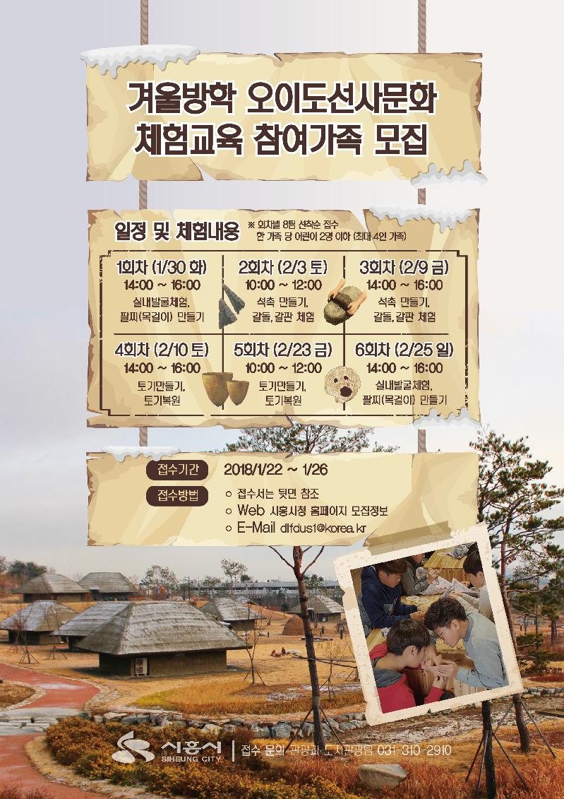 시흥시는 지난 2017년 12월 관내 초등학교와 유치원을 대상으로 총 6회에 걸쳐 선사문화체험 프로그램을 시범운영하였으며, 겨울방학을 맞아 시흥시 거주 초등학생 가족을 위해 이번 프로그램을 준비하였다.