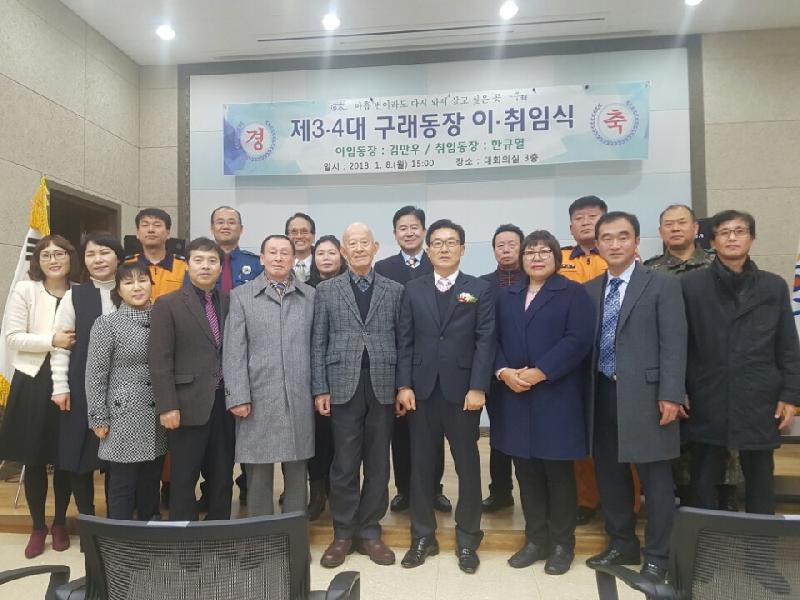 제4대 구래동장으로 취임한 한규열 동장은 “구래동 발전을 위하여 어르신 및 생활이 어려우신 분을 위한 복지를 우선시하는 화합행정을 이끌고 공직생활에서 터득한 지식과 경험을 바탕으로 더욱 발전하는 구래동을 만들겠다”며 취임포부를 밝혔다.