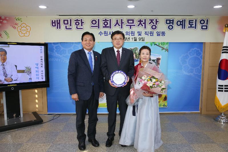 [미디어타임즈= 김광한 기자] 수원시의회 배민한(59) 의회사무처장이 지난 9일 38년간의 공직생활을 마무리하고 명예 퇴임했다.