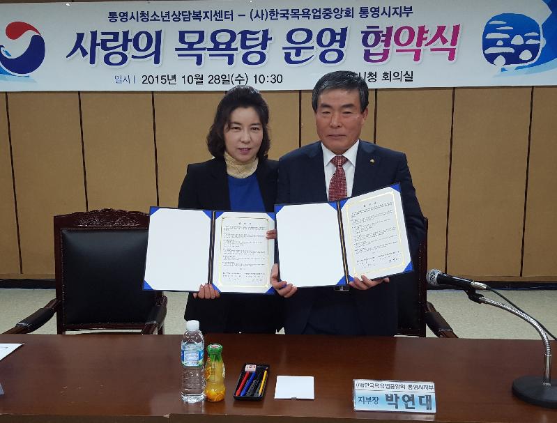 이날 협약식에 참여한 (사)한국목욕업중앙회 통영시지부는 2011년 10월부터 현재까지 두 차례 협약을 맺어 왔으며, 올해도 재 협약을 통해 『청소년이 행복한 도시 “통영”』을 위하여 적극적인 참여를 유도하고자 했다.