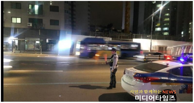| 목숨 건 무단횡단 금지! 집중 단속 사진. <ⓒ미디어타임즈> |