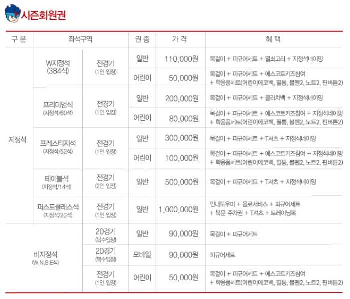 | '18년 시즌 회원권 가격표<미디어 타임즈> |
