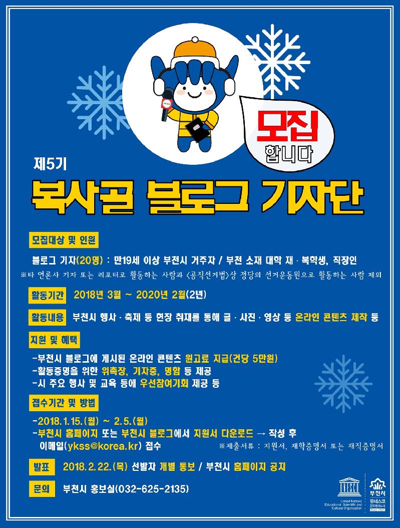 [미디어타임즈= 이옥수 기자] 부천시는 시 소식 및 유익한 생활정보를 재미있고 친근한 콘텐츠로 전달할 제5기 복사골 블로그 기자단을 모집한다.