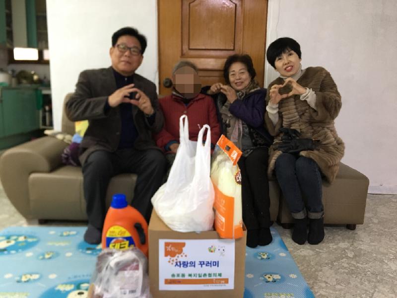 이번 활동은 송포동 지역사회보장협의체 16명의 위원들은 긴 한파로 인해 추위에 외롭게 지내고 있는 복지사각지대 위기가구 6가정 대상자의 복지욕구를 조사해 별 가구 특성에 맞는 생필품, 식료품, 의복, 떡국거리 등으로 ‘사랑의 꾸러미’를 준비해 전달했다.