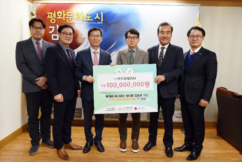 유영록 시장은 “해마다 현대백화점의 이웃돕기 성금으로 김포시의 어려운 주민이 추운 겨울을 따뜻하게 보낼 수 있어 든든하다. 사회공헌 활동에 열심인 기업들과 함께 발전할 수 있도록 열심히 노력하겠다”며 감사의 말을 전했다.